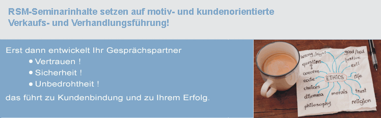 Im Mittelpunkt der RSM-Seminare steht Ihr Kunde und die Vorgabe Ihres Unternehmens ! |